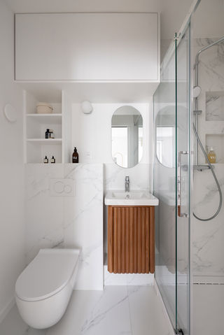 Rénovation complète d'un studio 22 m². Optimisation maximale et rangements sur mesure.