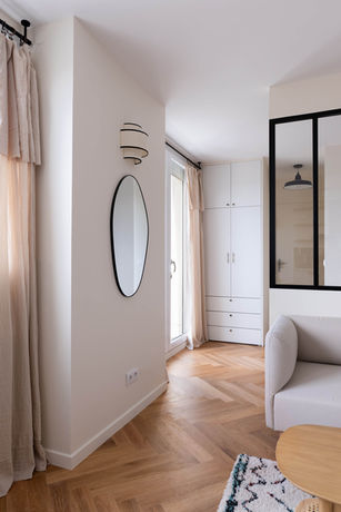 Rénovation d’un studio de 30 m² situé dans le 11ᵉ arrondissement de Paris. Destiné à un investissement locatif, l’appartement devait allier esthétique, fonctionnalité et respect du budget des travaux. Pour répondre à ces contraintes, nous avons conçu et réalisé plusieurs aménagements semi-sur mesure, optimisant chaque espace tout en apportant style et praticité.