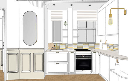 Rénovation totale d'un appartement de style haussmannien de 31 m² au cœur de Paris. Cet appartement, entièrement dans son jus, a été rénové de fond en comble. La pièce à vivre arrondie, dotée de magnifiques boiseries authentiques, a été redéfinie, avec la cuisine déplacée, qui était auparavant partagée avec la salle de bains. Les espaces ont été réaménagés et décorés dans le respect du charme de l'ancien.